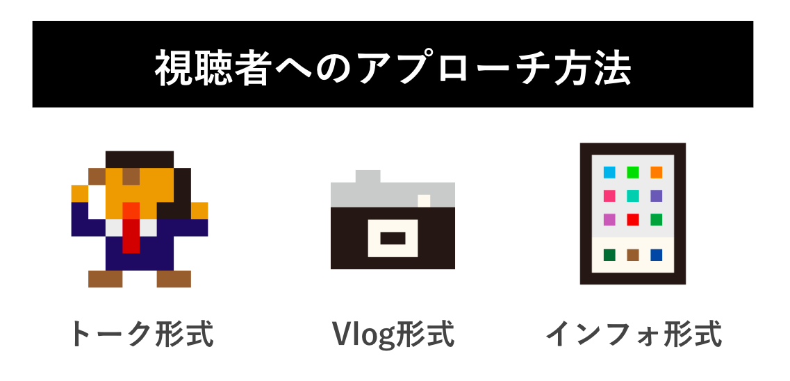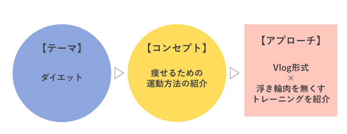 - コンセプト:テーマをどのように表現するかの手段。枠組み 例:トーク形式で専門性を語る、Vlog形式で日常を切り取る、インフォ形式で情報を整理する 初動は1つのコンセプトに絞ることで統一感が生まれ、ファン化しやすくなります。