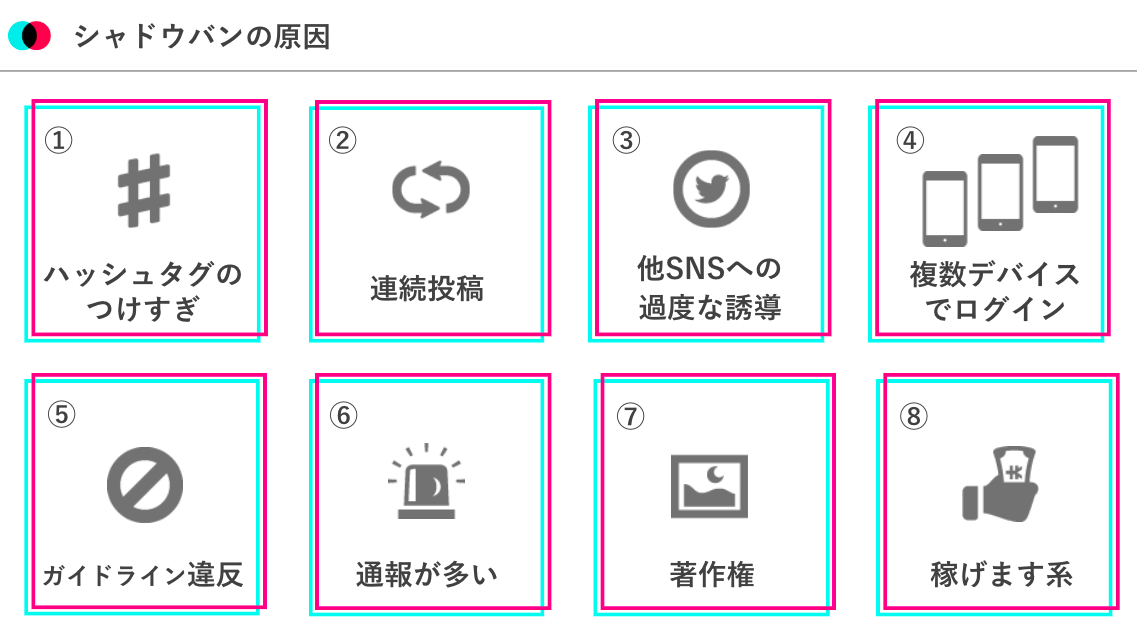 アカウント運用においてかなり不利な状態になってしまします。では、どうしてシャドウバンになってしまうのか。主な原因を見ていきましょう。